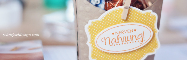 Eine Pommes-frites-Schachtel (auch genannt Fry-Box) voll mit brauchbarer Nervennahrung gab es bei einem meiner Neuen-Katalog-Workshops in Mondsee. Ich seh schon, diese Schachtel hat Potential ein Liebling zu werden 😉 .
