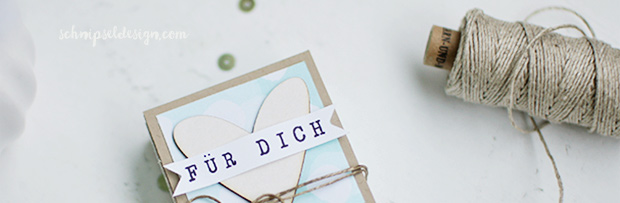 Das Herz ist aus Chipboard und kommt von Wycinanka. Den Banner habe ich mit dem Alphabet-Drehstempel gestempelt (geht einfach immer und für alles).