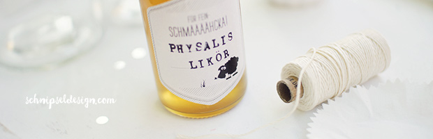Nach acht Wochen (ACHT Wochen, das ist echt sch*** lange, wenn man auf etwas wartet) hab ich nun endlich das Einmachglas öffnen und den Likör in kleine Flaschen umfüllen dürfen. Natürlich musste das Fläschchen auch aufgehübscht werden …