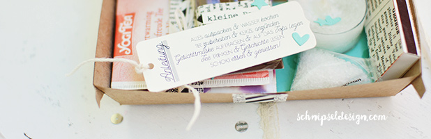 In Anlehnung an den Geburtstagskuchenbausatz (zB hier und hier) gibt’s heute Wellness/Entspannung TO-GO … so als mögliche Geschenkidee für gestresste Mütter zum Muttertag 🙂 Zumindest war das meine Intention dahinter.