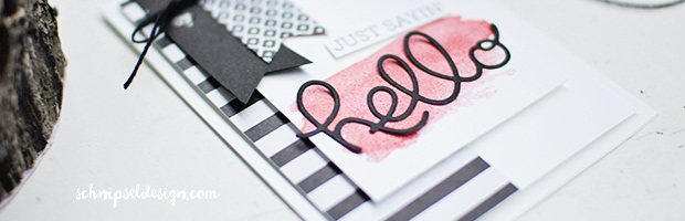 Mir war mal wieder nach Karte – nur so, ohne besonderen Anlass. Da passt doch der Spruch „Just sayin‘ Hello“ ganz gut. Die Thinlits Grüße mag ich echt gerne und sie passen perfekt zum Stempelset Crazy about You. Das Stempelset gibt es auch auf Deutsch (heißt dann „Du bist…“), die Thinlits leider nicht.
