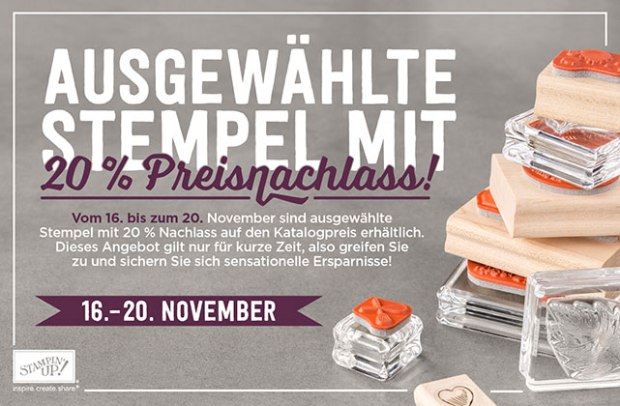 ÜBERRASCHUNG! Es gibt nur diese Woche -20% auf ausgewählte Stempelsets 🙂 Da lacht das Herz. Ein kleines Weihnachten im November. (Hier geht’s auch noch zum offiziellen Flyer.)