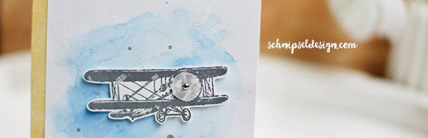 Die Spritzer auf dem Wasserfarben-Hintergrund sind eben mit dem Wink of Stella gemacht und schimmern so richtig schön. Propeller pimpen darf natürlich nicht vergessen werden.