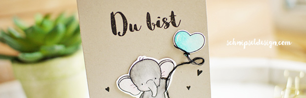 Hallo, hallo und willkommen zurück. Heute gibt’s ein Kärtchen zum Geburtstag das ich vor kurzem gewerkelt hab für eine sehr gute Freundin. Verwendet hab ich dafür ein neues Stempelset von Papierprojekt- #36 Grüße und einen Elephant aus dem Adorable Elephants Set von My Favorite Things. Die Basis-Karte ist in Savanne.
