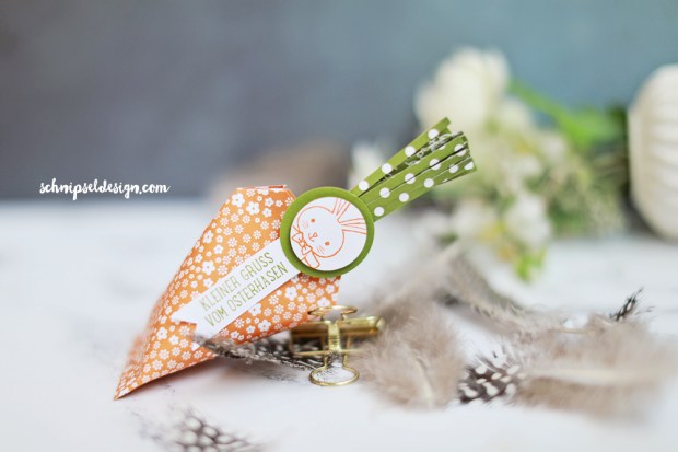 #2 Sour-Cream Verpackung in Karotten-Form. Dafür hab ich das Blümchenpapier in Kürbisgelb aus dem Designerpapier-Block der Signalfarben verwendet