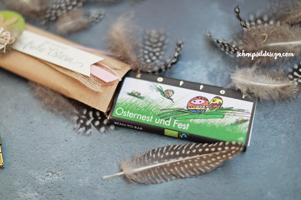 #1 Zotter Schoki verpackt (muss ja nicht immer ein klassisches Nest sein, oder?) – verwendet hab ich als Basis einfach Packpapier – das lässt sich nämlich schön durch den Crimper drehen.