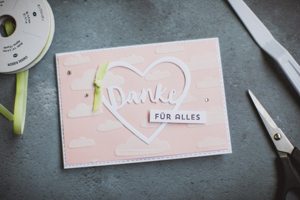 Mixed Media – quasi wie der „Achtsamkeits-Trend“ anderswo nur in der Bastel-Szene. Wikipedia sagt dazu: „Der Begriff Mixed Media steht in der bildenden Kunst für die Verwendung unterschiedlicher Medien bei der Erstellung eines Werkes.“ In meinem Fall – Papier, Band, Embossing-Paste, Stift und Strasssteine. Das gilt, würd ich sagen.