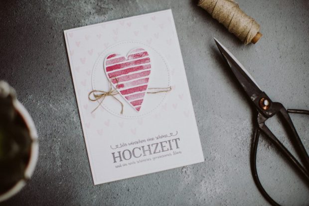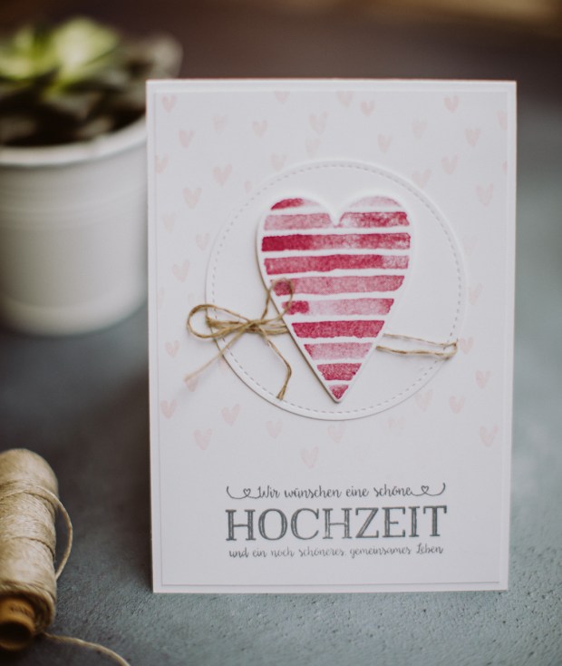 Hallo zum Stempelherz-Hop zum Thema Hochzeitsgratulationen. Passt wie Faust auf Auge, nachdem eine Hochzeitskarte vor kurzem als Workshop Projekt gewünscht wurde. Farblich sind wir sehr zart unterwegs – Zartrosa, Sommerbeere und Anthrazitgrau.