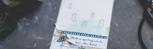 Manchmal seh ich eine Karte auf Instagram und denk mir, ach ist die schön, die will ich auch basteln. So geschehen bei dieser hier (im Original gesehen bei Susan Wong). Man muss ja das Rad nicht immer neu erfinden, es finden sich in den Weiten des WWW so viele schöne Inspirationssachen – oder eben auch im Katalog.