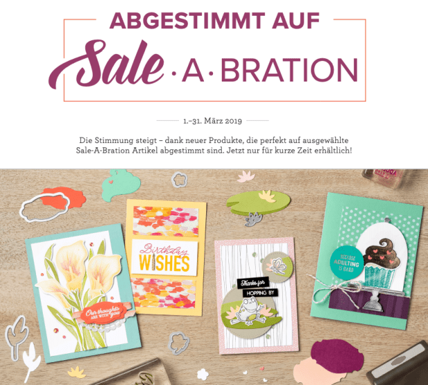 Seite heute, 1. März gibt es Artikel die speziel auf die Sale-A-Bration abgestimmt sind. Alle Produkte findest du in diesem Flyer (oder Klick auf das Bild):