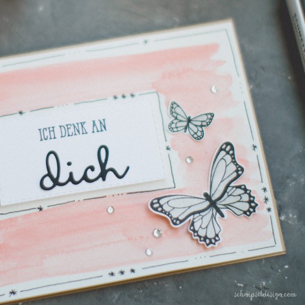 Zum Einsatz kam ebenfalls wieder das Stempelset Gut gesagt – inklusive der passenden Framelits. Und ein bisschen Glitzer … ich mein, Strass geht ja immer irgendwie