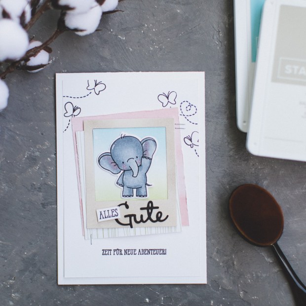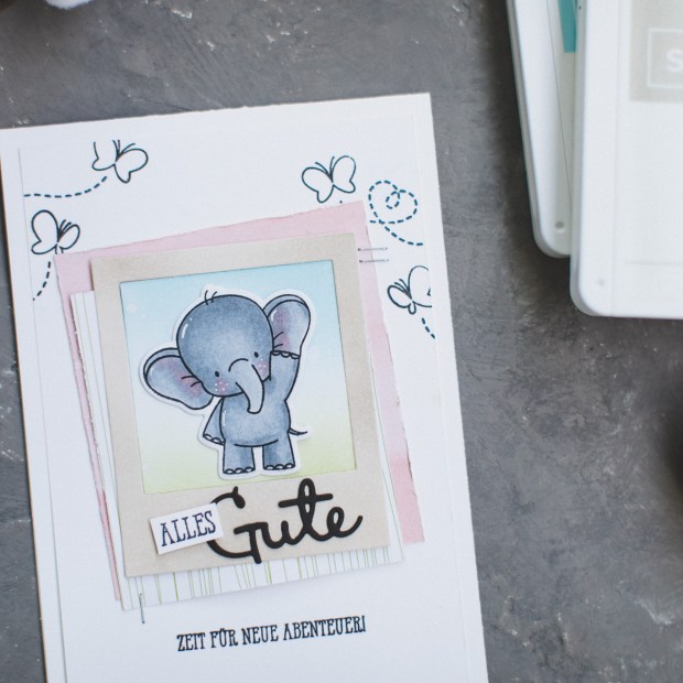 Kombiniert hab ich es mit dem süß zum Abschied winkenden Elefanten aus dem My Favorite Things Set – Adorable Elephants. Ich dachte, dass passt ganz gut irgendwie.