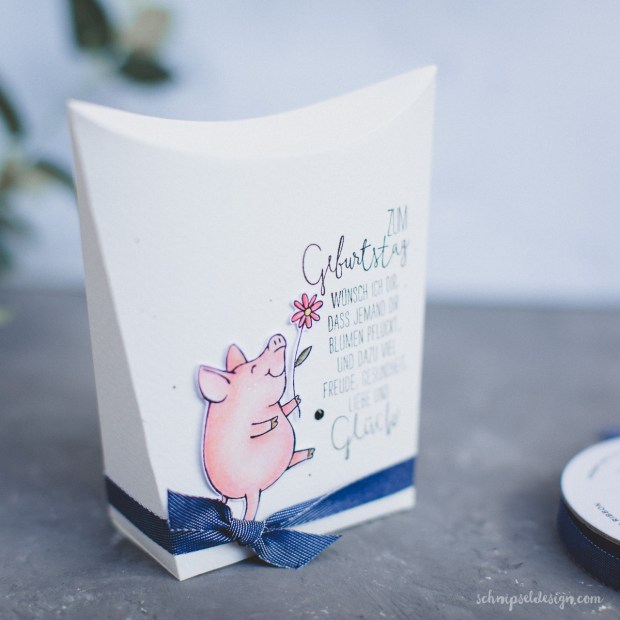 Ich mag den zweiteiligen Spruch aus dem Stempelset Für besondere Anlässe so gern (weil nett und schöne Schriftart) … und ich mein, wie perfekt passt dieses süße Schweinchen zu diesem Spruch? Einfach traumhaft.