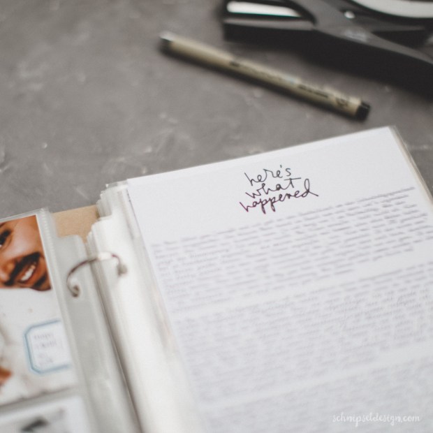 Die Figuren waren erst bei meinem Ali Edwards Kit dabei und passten einfach perfekt würde ich meinen. Ich liebe es einfach nur so halbe Labels für die Beschriftung von Bildern zu verwenden – und immer schön angetackert. Ich verwende dazu meistens meinen Tiny Attacher*.