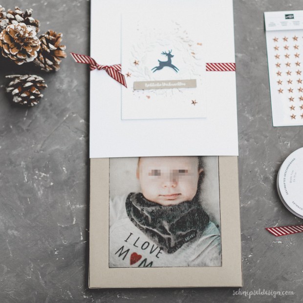 Noch ein paar Metallic Sterne dazu und den Spruch aus dem Stempelset Weihnachtsmix.