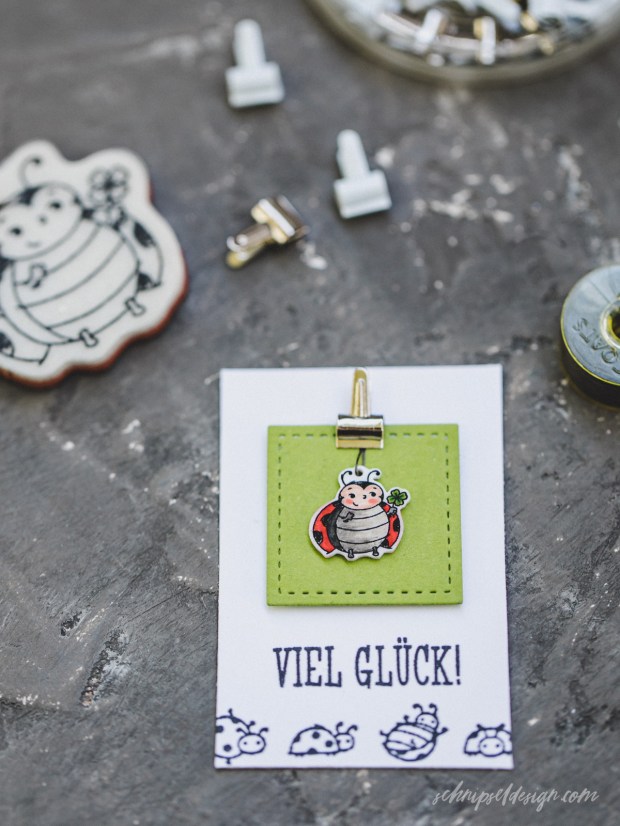 Damit man zum Verschenken auch was in der Hand hat, noch ein kleines Kärtchen dazu mit einem Quadrat in Apfelgrün und schon kann’s weitergegeben werden – ich mag es, wenn man solche kleinen Sachen zum Beispiel einfach in die Geldtasche geben kann. Die Glücksbringer 2020 wären dann schon mal gesichert.