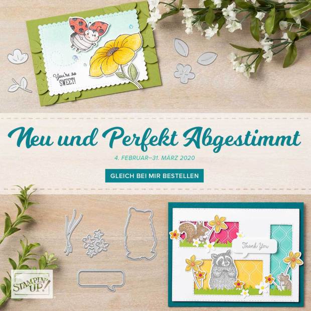 Es gibt ab 4. Februar neue Produkte die perfekt auf die Sale-A-Bration und den Mini Frühling-/Sommerkatalog abgestimmt sind. Mit dabei sind zB Stanzformen für das Glückskäfer-Set aus der Sale-A-Bration oder für den süßen Waschbär aus dem Mini-Katalog.