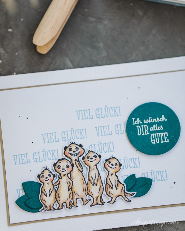 Nach der Weihnachtspause geht’s auch bei unserem Blog Hop in eine neue Runde. Wir haben uns auf die Sale-a-Bration geeinigt – konkret auf das Stempelset Von uns allen. Ganz große Erdmännchen Liebe hier. Das Einzige was mich hier stresst ist, dass ich es irgendwie geschafft habe den Stempel mit Text „Zum Geburtstag viel Glück und Freude“ zu verduppern … ich find ihn nicht mehr. Dachte ja eigentlich ich hab ihn wohl falsch eingeklebt, aber nein, nirgends, nada, nix. Naja, hoffen wir also, dass er wieder auftaucht.