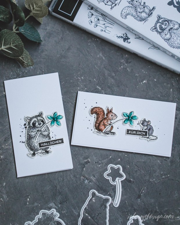 Es sind also zwei kleine Kärtchen mit dem Stempelset Special Someone geworden – weil es einfach Waschbärenliebe auf den ersten Blick war ❤ . Sie sind einfach zu putzig. Passend zum Set kommt Anfang Februar auch noch das Stanzenset, das macht die Liebe gleich noch größer.