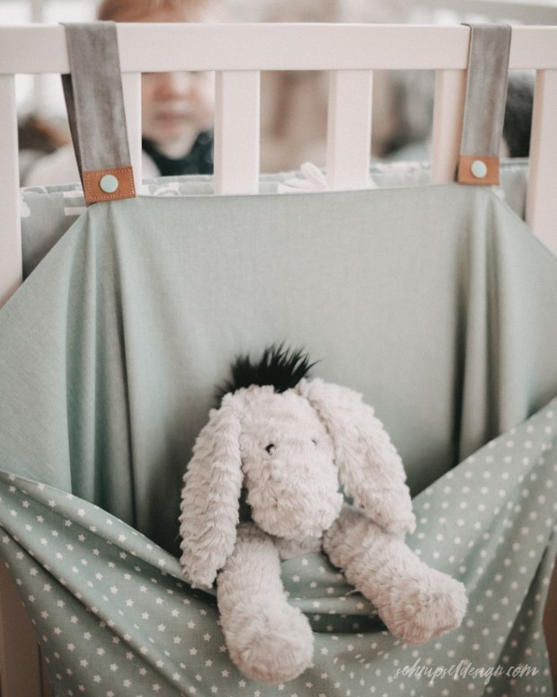 Unser Laufstall bietet dem kleinen Spatz nicht mehr sooo viel Platz zum rumkugeln dank diversester Spielsachen. Und eigentlich wollte ich so eine Laufstall-Aufbewahrungstasche schon vor der Geburt nähen, aber ja, wer konnte wissen, dass er nicht termingerecht kommt. Also hab ich jetzt nachgeholt.
