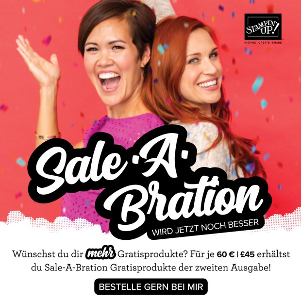 Die Sale-A-Bration ist bereits in der finalen Runde – daher gibt es seit 3. März nochmal neue (gratis) Produkte. Hier findest du die neue Broschüre dazu (oder klicke einfach auf das Bild).