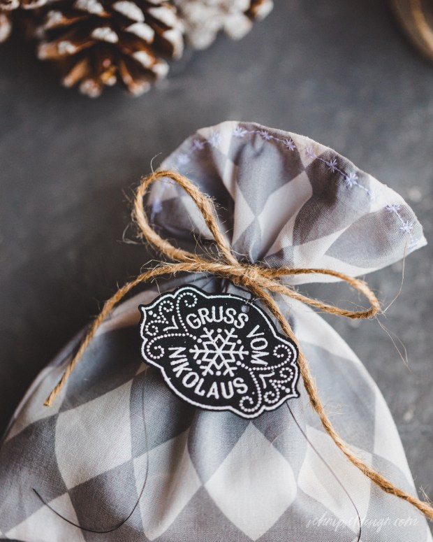 Blog-Hop Runde zum Thema Nikolaus. Ich mach es kurz und schmerzlos. Ich hatte erst in einer Stoffbestellung als „Guzi“ zwei Streifen Baumwollstoff dabei und da ich ja nie so wirklich weiß was ich damit machen soll, hab ich kurzerhand kleine Geschenkbeutel daraus genäht – kann man toll wiederverwenden 🙂