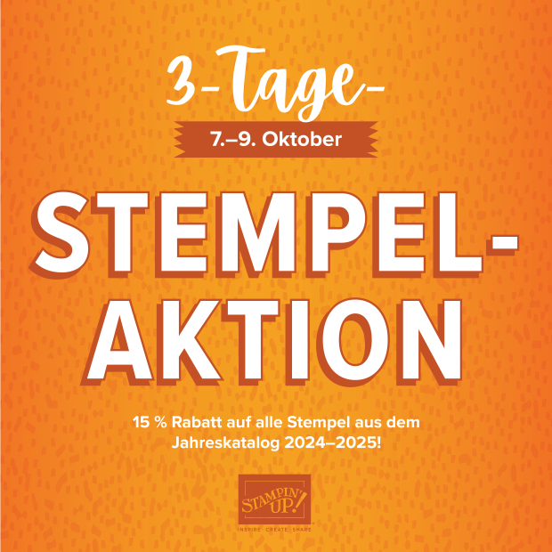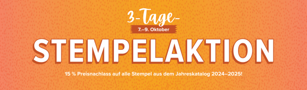 Du interessierst dich für mehrere Stempelsets und kannst dich nicht entscheiden, welches du bestellen sollst? Dann gibt es tolle Neuigkeiten. Vom 7. bis 9. Oktober kannst du deine Wunschsets (aus dem Jahreskatalog) mit einem Preisnachlass von 15 % sichern. Aber nur 3 Tage lang.