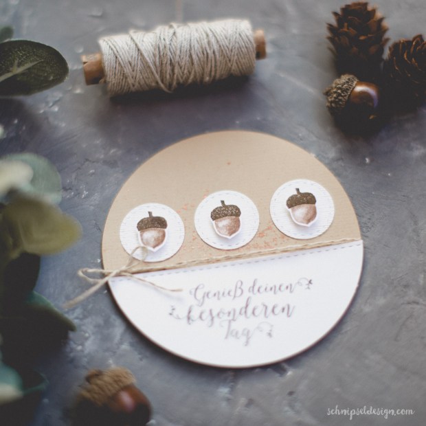Coloriert hab ich ihn mit den Stampin Blends und kleinere Details hab ich mit den Polychromos* ergänzt. Das Blätterband passt auch wie die Faust aufs Auge dazu. Ja, ich weiß, sie ist eher schlicht, aber das mag ich. Der Spruch kommt aus dem ebenfalls neuen Stempelset Geburtstagsmix.