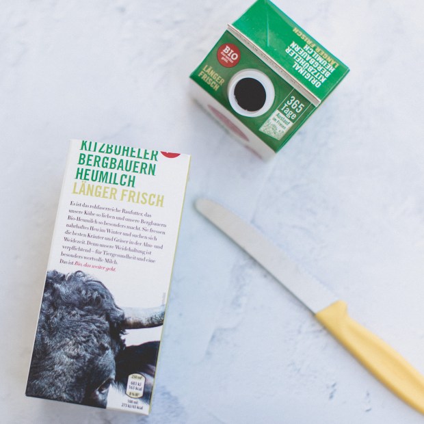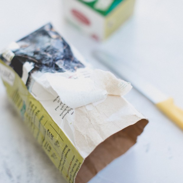 Der obere Teil der Milchtüte wird abgeschnitten – wenn der Rand hier nicht so sauber ist, ist das egal, da dieser später sowieso eingeschlagen wird.