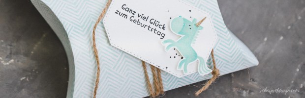 Das Einhorn ist in Aquamarin 2x gestempelt. Die Nachschattierungen hab ich mit Polychromos eingezeichnet. Die Augen sind ebenfalls per Hand eingezeichnet – fand ich hier irgendwie stimmiger als das gestempelte Gesicht.