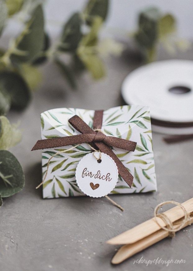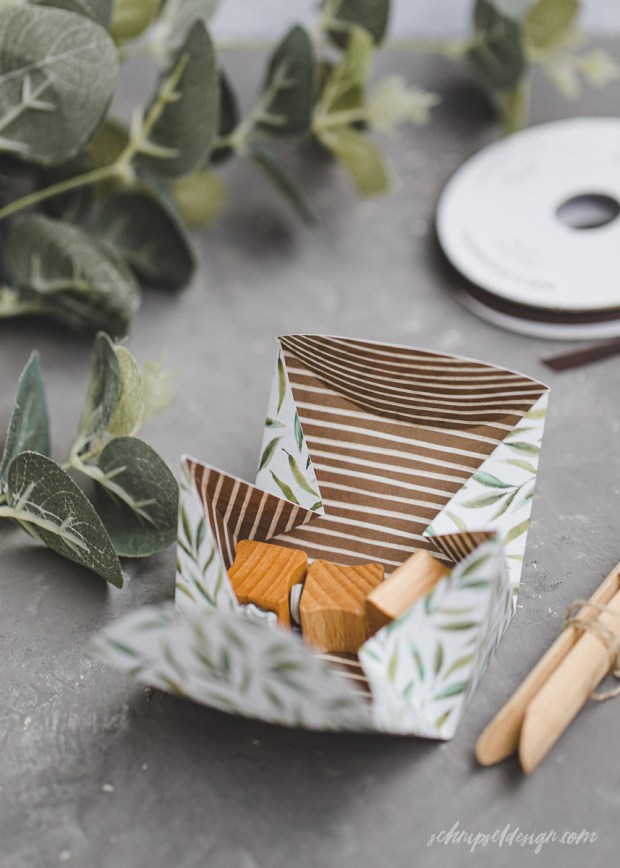 Ich hab sie wie du sehen kannst mit dem Band verschlossen – man kann sie aber auch Zusammenstecken, dann geht’s ganz ohne Band.