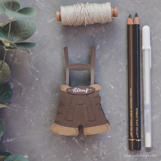 Mit der Etikettanhänger-Stanze hab ich aus Espresso-Farbkarton den Anhänger ausgestanzt und anschließend mit der Big Shot geprägt (der Prägefolder heißt Candy Hearts und ist von Sizzix).