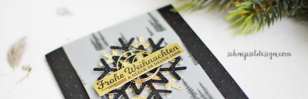 Die Materialien für Dezember waren echt toll. Da ich die Sachen Anfang Dezember erhalten habe und die Farben Schwarz & Gold waren, war für mich klar, dass es weihnachtlich wird. Aus meinem Paket sind daher zwei Weihnachtskarten entstanden & danach war quasi nix mehr übrig: