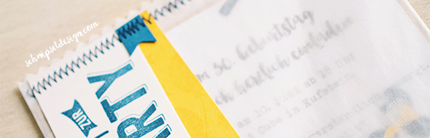 Verwendet hab ich für die Box (innen) Jeansblau und außen das Designerpapier Am Meer. Für den Verschluss hab ich mir Ovale ebenfalls aus Jeansblau ausgestanzt. Das „Danke“ kommt aus dem passenden Stempelset Zum Dank – dahinter ein Banner in Vanille Pur, Paillettenband und Rüschenband ebenfalls in Jeansblau.