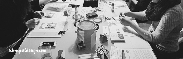Jetzt aber zu meinem Projekt für heute. Für meinen letzten Workshop galt die Vorgabe, dass selbst gesiedete Seifen schön verpackt werden sollen. Da sich mit dem Stanz- und Falzbrett für Umschläge auch toll passgenaue Boxen anfertigen lassen, wollte ich unbedingt diese Möglichkeit zeigen – und so dann mein Projekt dazu aus …