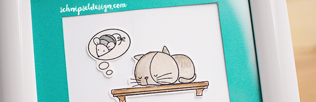 Auf der Suche nach Etwas in den weiten meines Papiervorrats kam ich an super süßen, kleinen Kartenrohlingen vorbei (keine Ahnung wo die her sind – man sammelt ja vieles). Jedenfalls wollte ich gleich was Hübsches draus machen – mit meinen Stempelvorrat von Papierprojekt und aufgrund fortgeschrittener Entzugserscheinungen von der Katze (meinem Baby) selbstverständlich mit Katzenmotiv (in grau).
