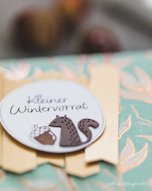 Das weiße Label aus den neuen Stanzformen Gewellte Konturen wurde einfach um das Eck geklebt. Vorne drauf – ganz schlicht – die Kängurus aus dem Produktpaket Kangarooh & Company.