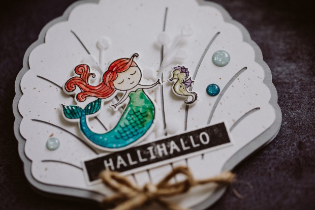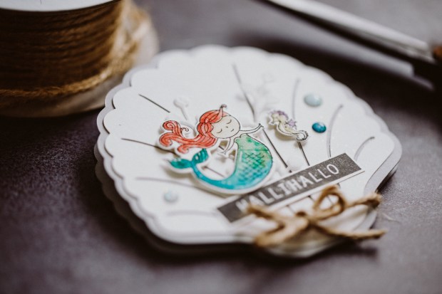 Für heute haben wir uns vorgenommen ein Stempelset zu verwenden, dass bisher ganz jungfräulich nur im Regal rum stand – bisher also noch nie einen Einsatz hatte. Da hat leider jeder so ein paar davon stehen, vermute ich mal.