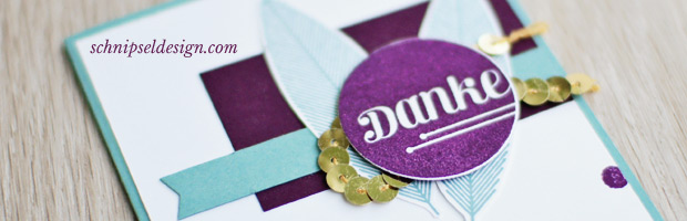 Die Stempel aus dem Stempelset Heiteres Hurra find ich sehr toll – sie sind einfach irgendwie, weiß nicht, modern? Sie entsprechen jedenfalls meinem Geschmack und Stil 🙂 Der kleine Banner in Lagunenblau wurde auf der linken Seite mit der Fähnchen-Stanze gestanzt.