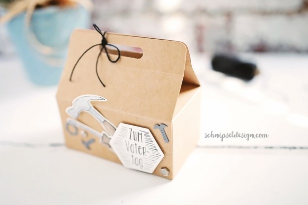 Vatertag find ich ja immer ganz schwierig … weil was schenkt man Papa? Ein Vierkanthobler ist dann doch etwas zu teuer und zu groß – eigentlich sollt es ja auch nur was Kleines sein. Da mein Dad sehr auf Schoko-Bons etc steht, wird’s also was für die Figur geben. Eingefüllt in eine kleine selbst gemachte Lunchbox.