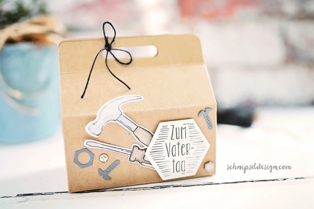 I created this little lunchbox and decorated it with the Nailed It! stamp set and dies. Pretty basic but just perfect for my dad I think.